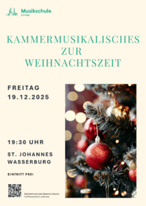 Kammermusikalisches zur Weihnachtszeit am Freitag 19.12. um 19:30 Uhr. Herzliche Einladung!