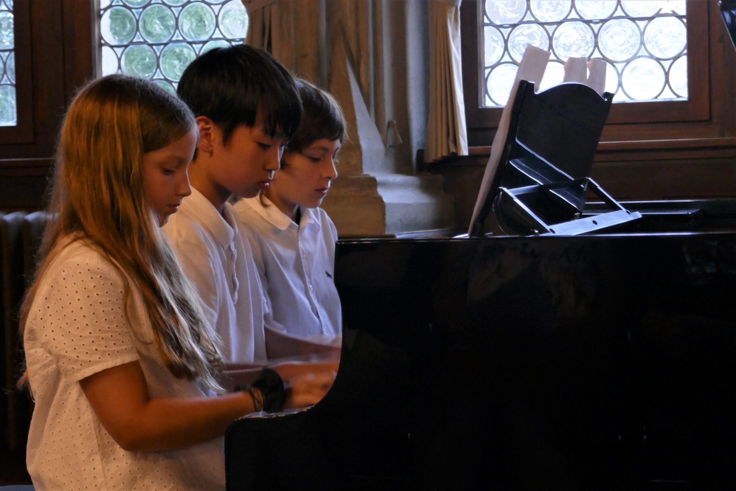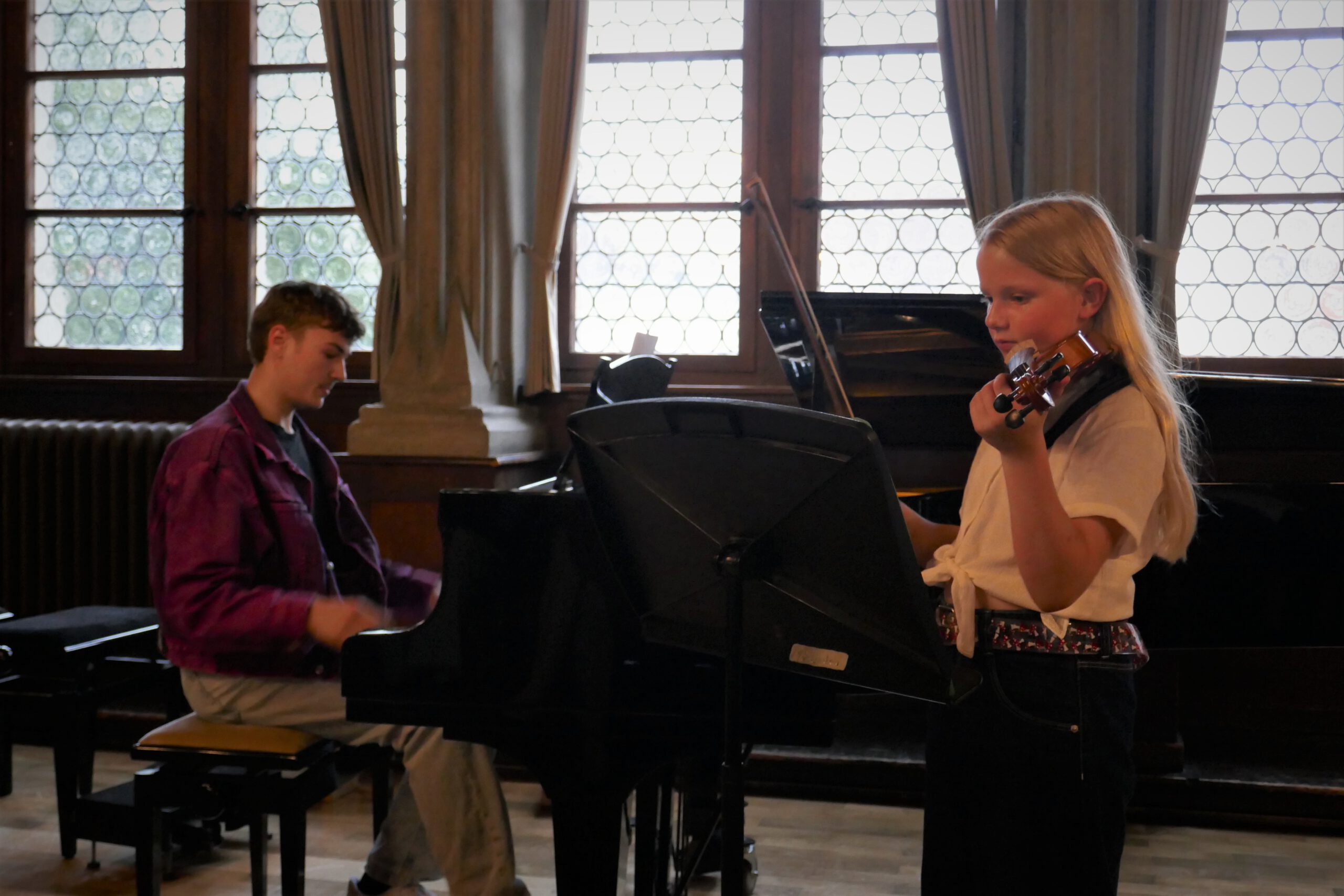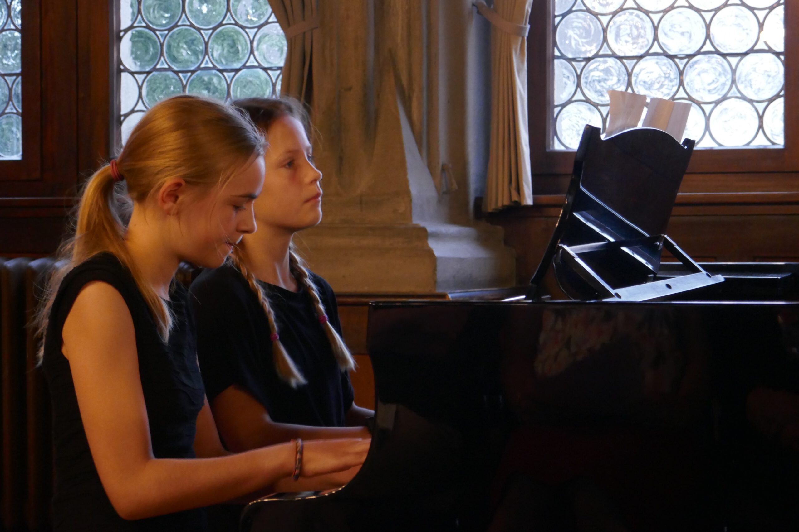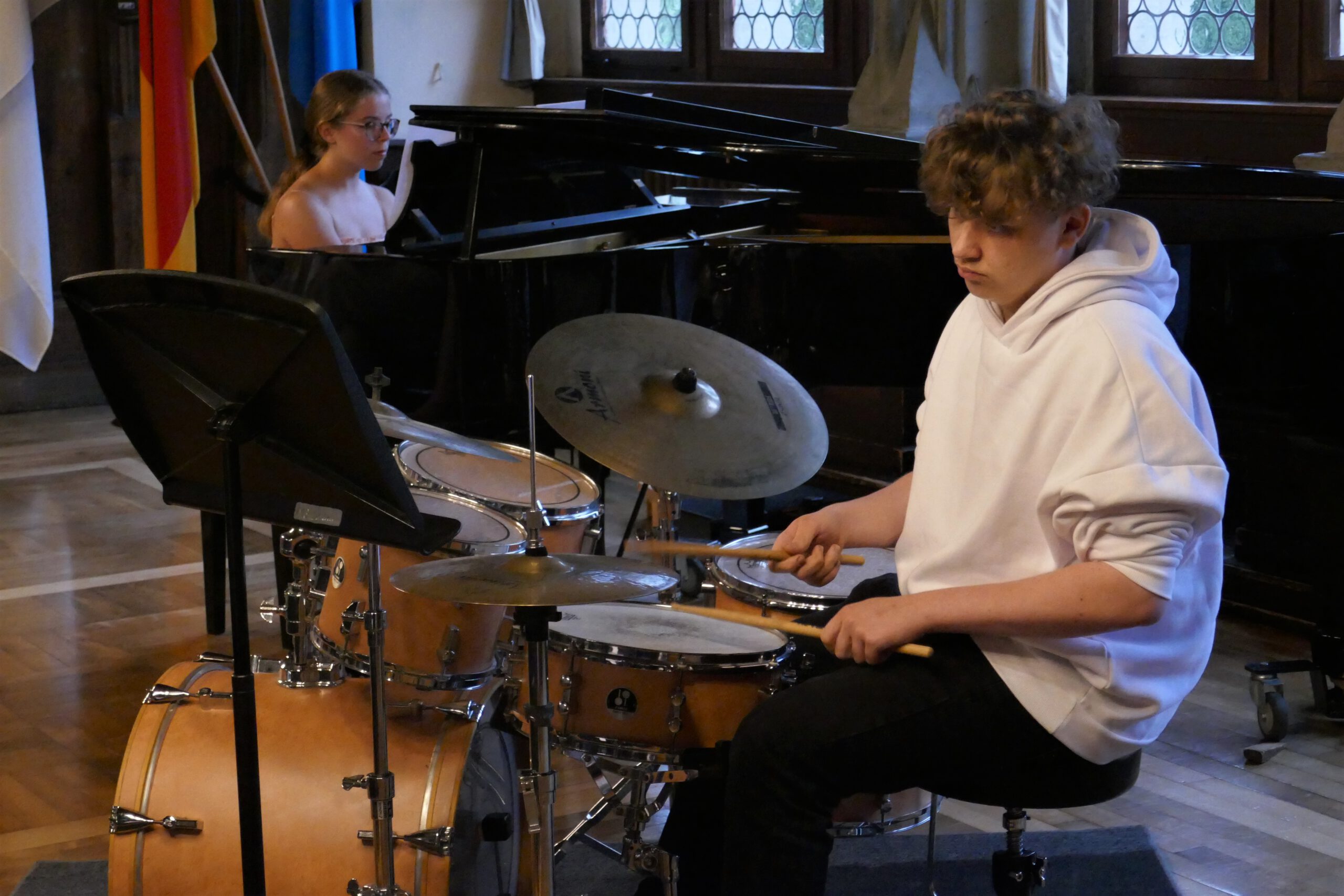 gelohnt hat, bewiesen die kleinen und großen „Musizierfreunde“: Ob verträumte Klänge beim Vierhändig-Spiel am Klavier, schwungvoller Karibik-Sound mit Posaune, ausdrucksvolle Cello – Klänge, kraftvoll präsentierte Klavier-Musik zu 6 Händen, zarte Geigenmelodien oder ein rhythmisch vertrackter Dialog zwischen Klavier und Drumset – alle Musikschüler zeigten ein beeindruckendes Können und einen souveränen Auftritt. Das Publikum war begeistert von dem fein abgestimmten Musizieren, der spürbaren Spielfreude und dem abwechslungsreichen Programm. Langanhaltender Beifall belohnte die jungen Künstler.